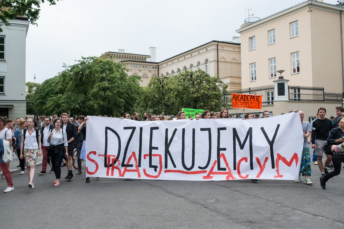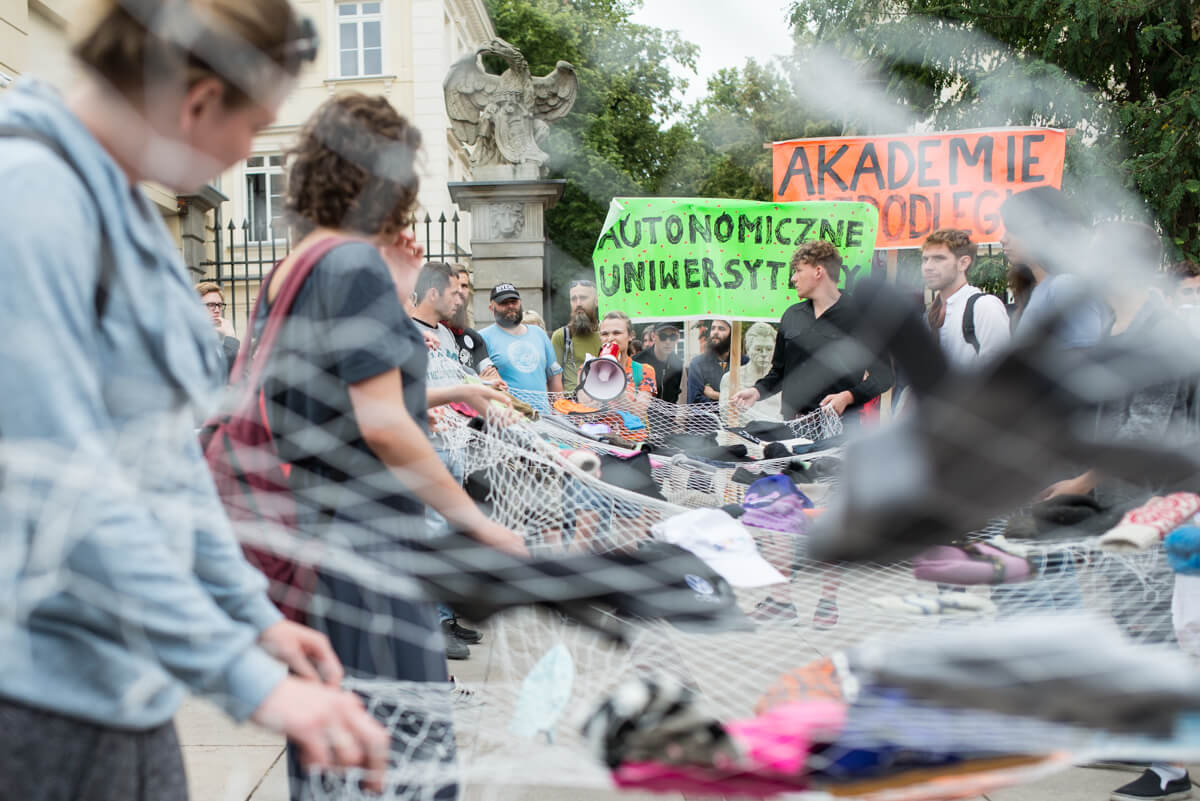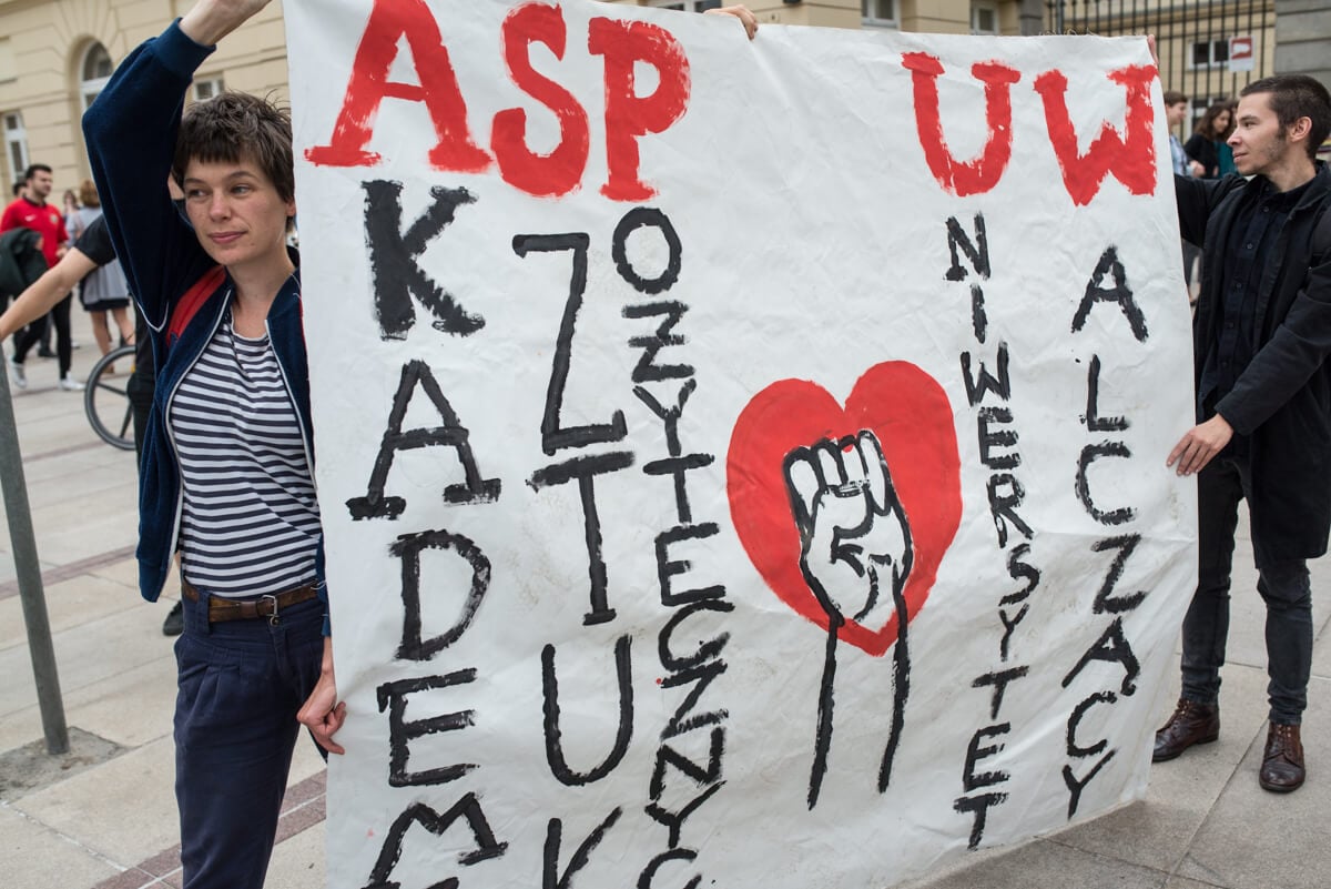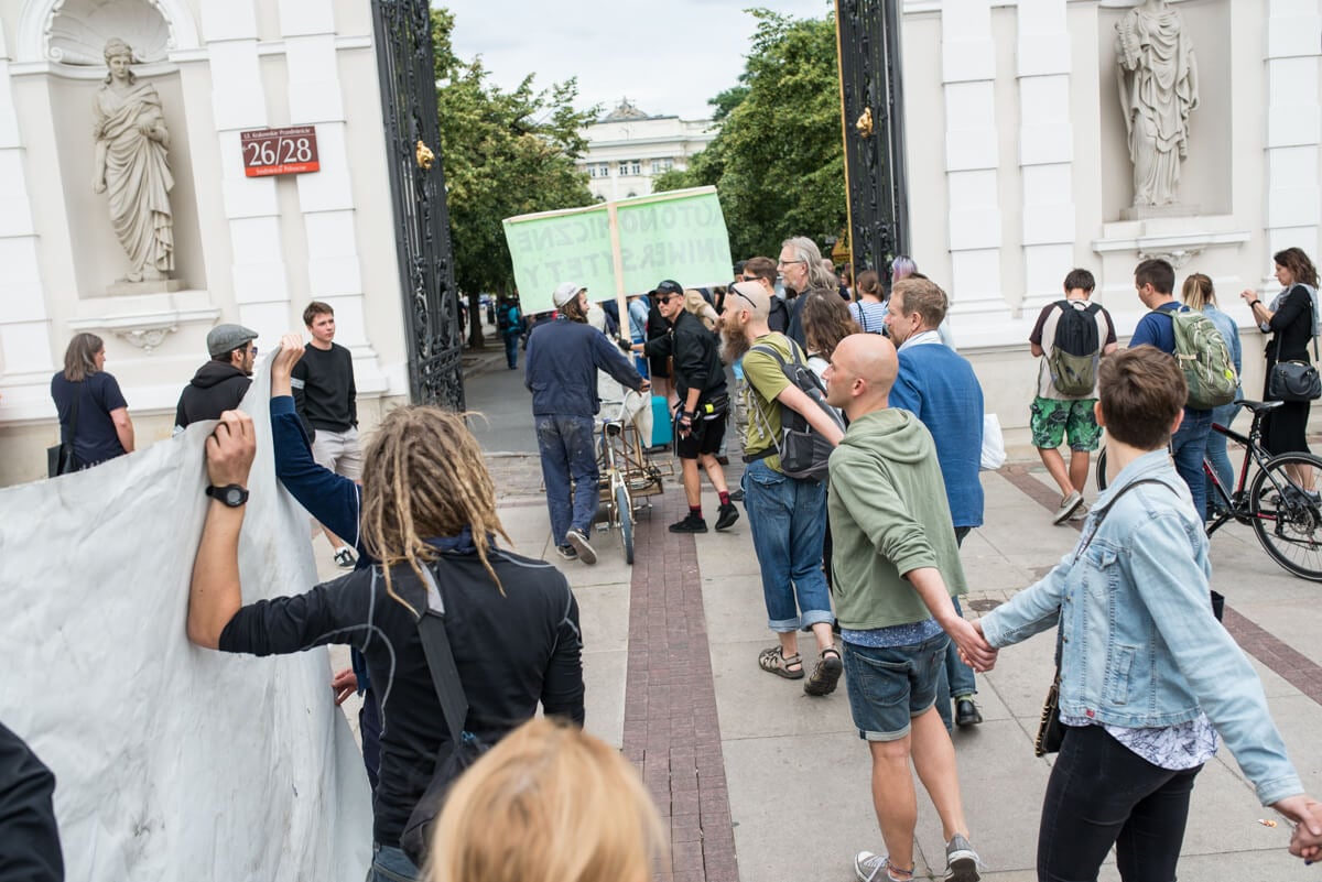 W środę 13 czerwca protestujący trzymając się za ręce stworzyli łańcuch łączący Uniwersytet Warszawski i Akademię Sztuk Pięknych.