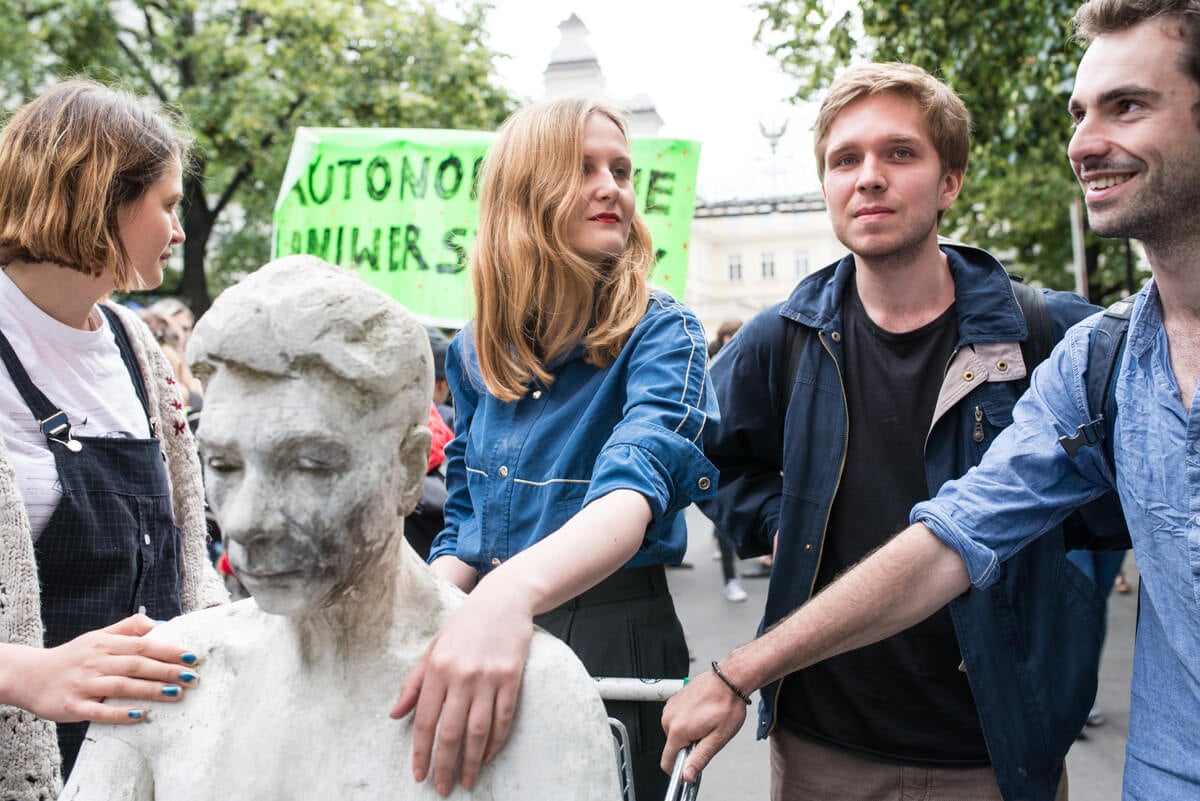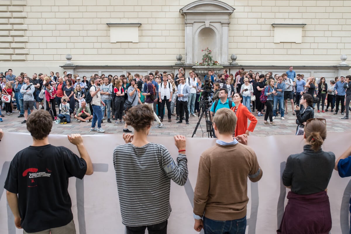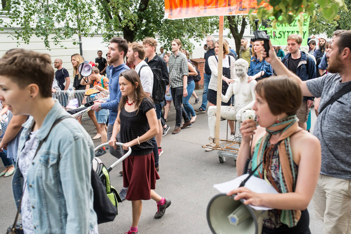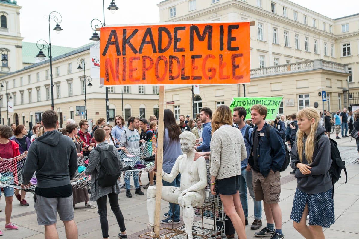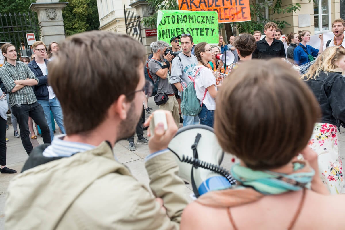 W środę 13 czerwca protestujący trzymając się za ręce stworzyli łańcuch łączący Uniwersytet Warszawski i Akademię Sztuk Pięknych.
