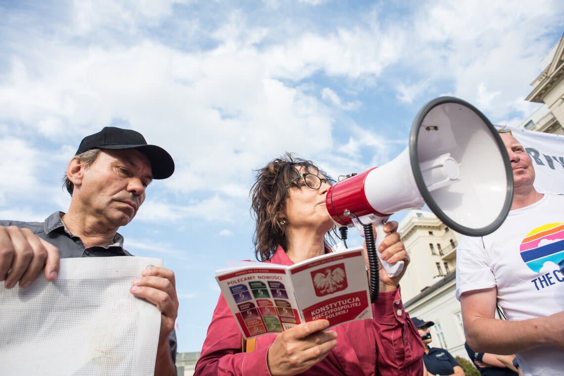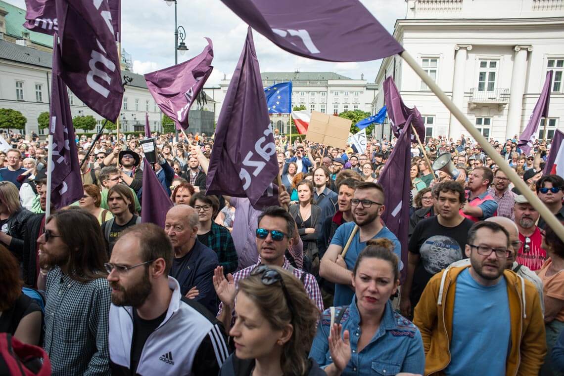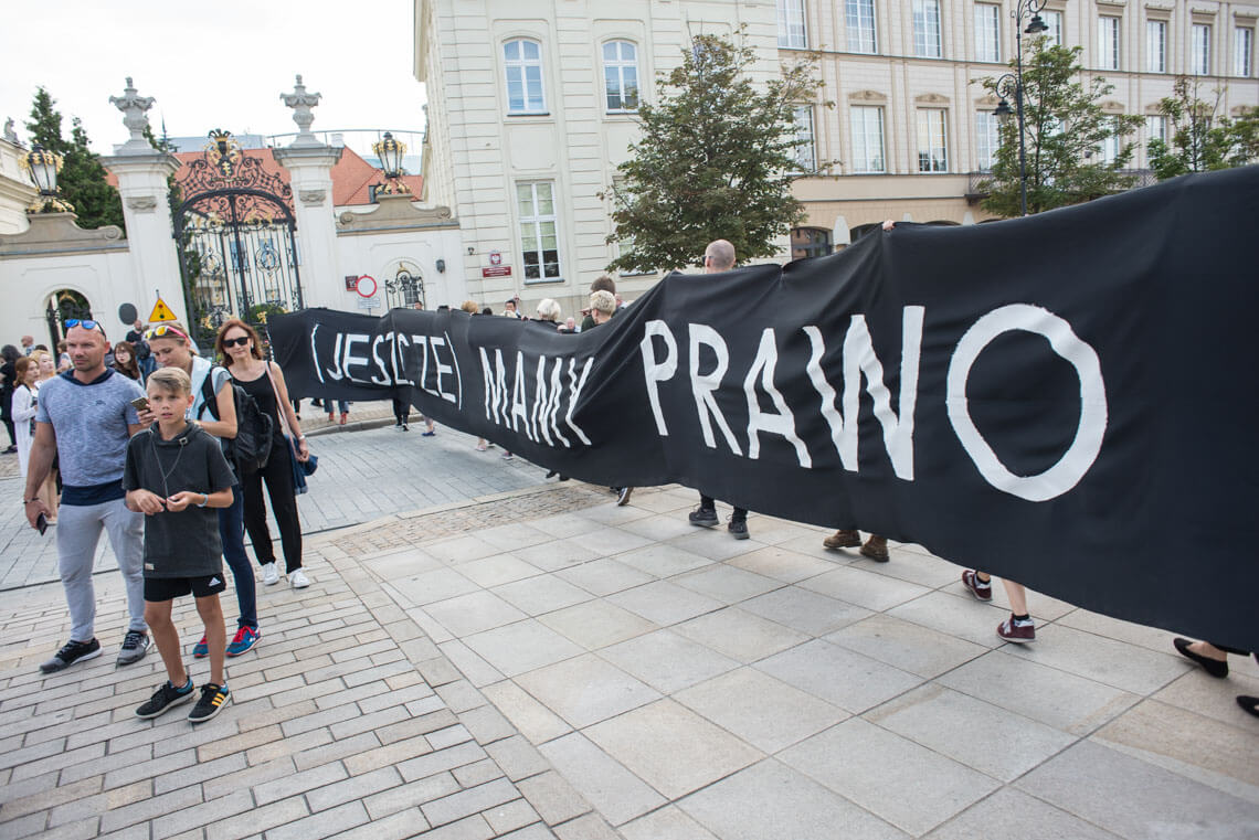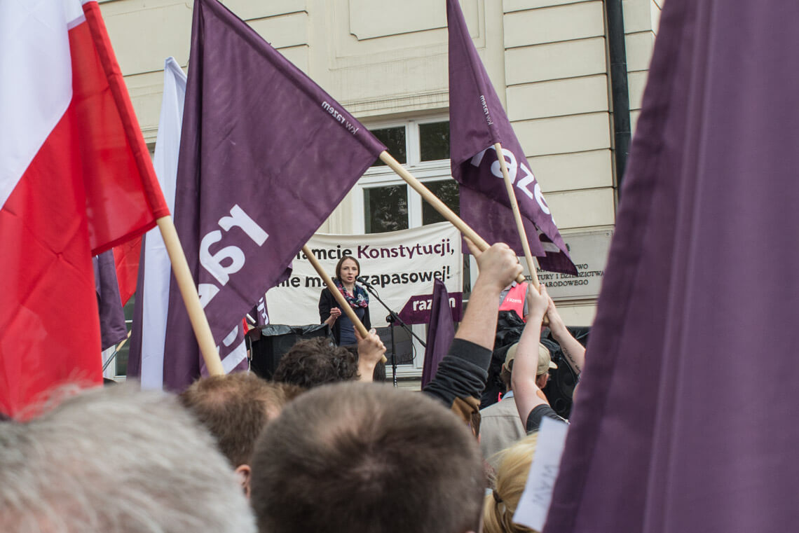 W Warszawie w piątkowy wieczór pod Sejmem protestowała grupa Obywateli RP. Na protest zareagowała policja. W sobotę pod Pałacem Prezydenckim odbyła się demonstracja zorganizowana przez partię Razem. „Jesteśmy tutaj, ponieważ zagrożone są fundamenty naszej demokracji: wolność i niezależność sądów oraz wolność i demokratyczność wyborów. Musimy tutaj być, ponieważ wiemy jak wygląda kraj, w którym tych wartości nie ma. Ja widziałam taki kraj z bardzo bliska – Białoruś. Widziałam sąd, który skazuje ludzi zgodnie z zamówieniami władzy. Zostałam skazana przez taki sąd na 10 dni aresztu za wznoszenie antypaństwowego okrzyku «Białoruś żyje». Tak działają sądy podległe władzy. Takie sądy możemy mieć za chwilę w Polsce. Widziałam sfałszowane wybory, niepilnowane urny wyborcze, niepoliczone głosy, dosypywane głosy i szefową Centralnej Komisji Wyborczej, która ogłaszała, że Aleksander Łukaszenka dostał 79 proc. głosów, frekwencja wyniosła 90 proc. i żadnych nieprawidłowości nie stwierdzono. Nie ma odwołania od tych decyzji, jeżeli nie mamy niezależnych sądów. Jedynym odwołaniem staje się ulica” – mówiła na demonstracji Weronika Samolińska z Razem.