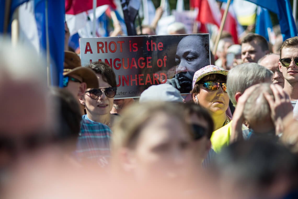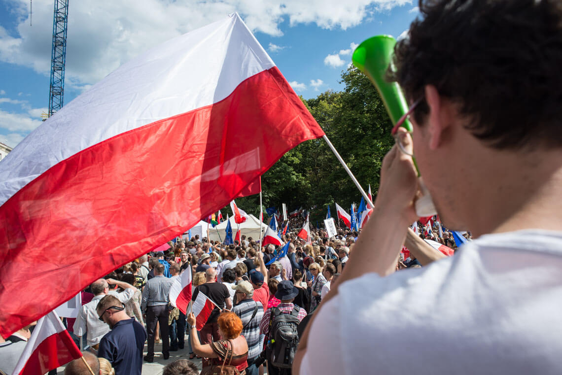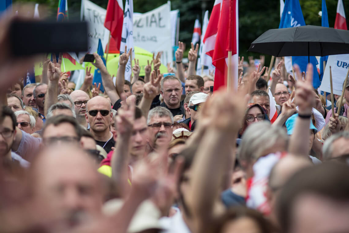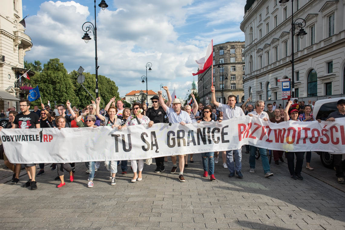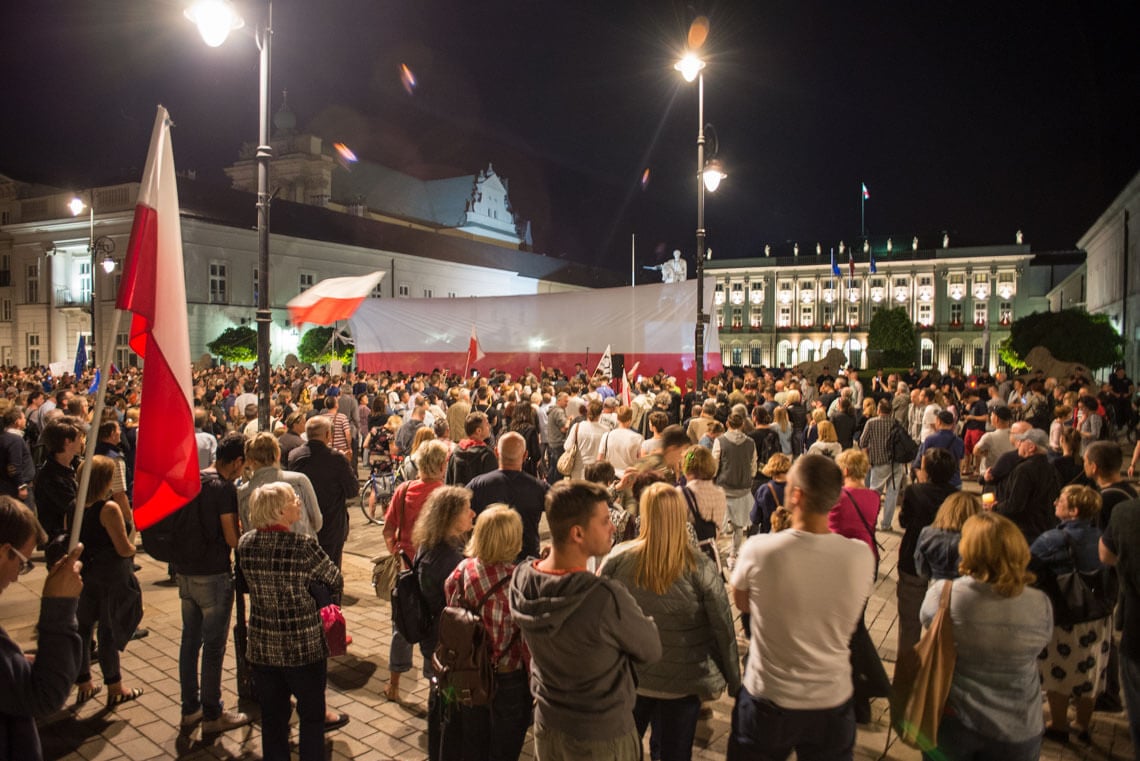 W Warszawie w piątkowy wieczór pod Sejmem protestowała grupa Obywateli RP. Na protest zareagowała policja. W sobotę pod Pałacem Prezydenckim odbyła się demonstracja zorganizowana przez partię Razem. „Jesteśmy tutaj, ponieważ zagrożone są fundamenty naszej demokracji: wolność i niezależność sądów oraz wolność i demokratyczność wyborów. Musimy tutaj być, ponieważ wiemy jak wygląda kraj, w którym tych wartości nie ma. Ja widziałam taki kraj z bardzo bliska – Białoruś. Widziałam sąd, który skazuje ludzi zgodnie z zamówieniami władzy. Zostałam skazana przez taki sąd na 10 dni aresztu za wznoszenie antypaństwowego okrzyku «Białoruś żyje». Tak działają sądy podległe władzy. Takie sądy możemy mieć za chwilę w Polsce. Widziałam sfałszowane wybory, niepilnowane urny wyborcze, niepoliczone głosy, dosypywane głosy i szefową Centralnej Komisji Wyborczej, która ogłaszała, że Aleksander Łukaszenka dostał 79 proc. głosów, frekwencja wyniosła 90 proc. i żadnych nieprawidłowości nie stwierdzono. Nie ma odwołania od tych decyzji, jeżeli nie mamy niezależnych sądów. Jedynym odwołaniem staje się ulica” – mówiła na demonstracji Weronika Samolińska z Razem.