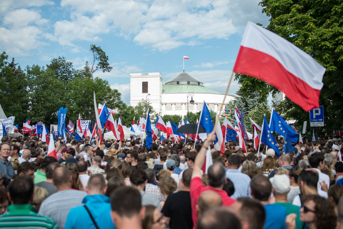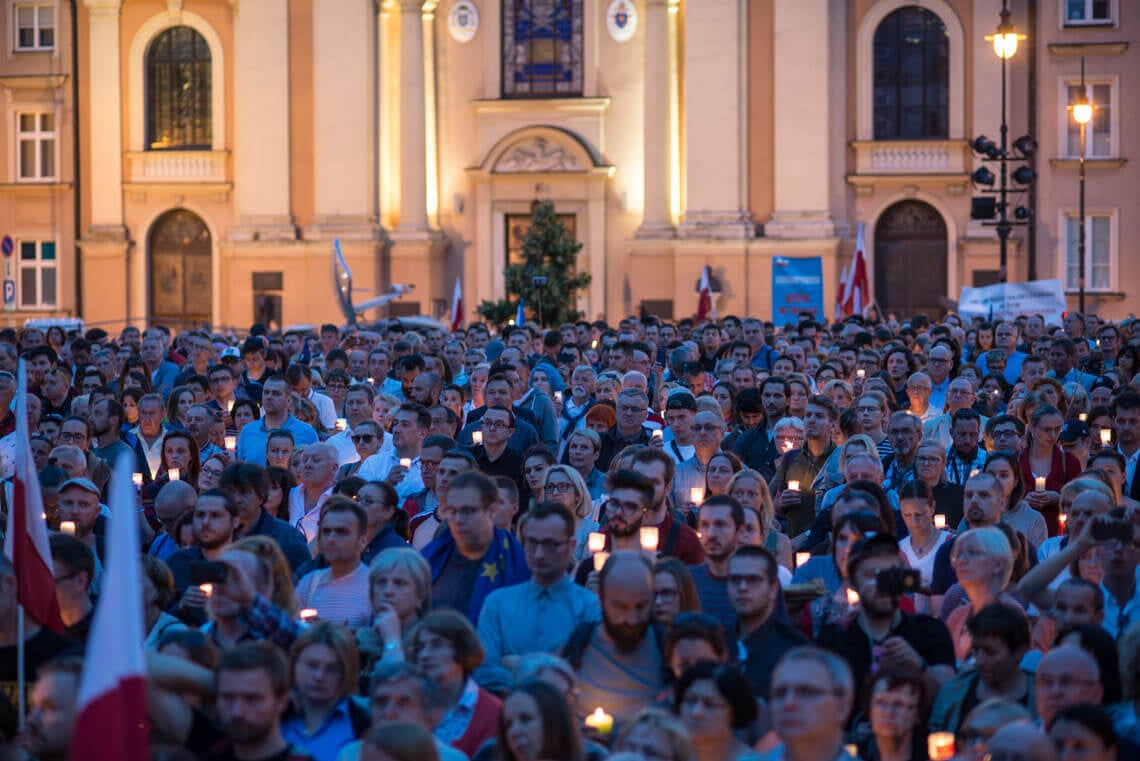 W weekend 14-16 lipca w wielu miastach odbyły się protesty przeciwko przyjętym przez Sejm i Senat ustawom o Krajowej Radzie Sądownictwa i o ustroju sądów powszechnych oraz przeciwko projektowi zmian w Sądzie Najwyższym.